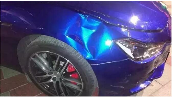 被撞的玛莎拉蒂,凹了一大块,可见这冲击力可不小啊!↓↓