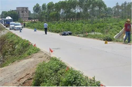 事故发生在2017年4月17日12时40分左右,现场位于玉林市福绵区成均镇大岭村马口路段。当玉林市公安局交警支队直属二大队事故处理民警接到报警后赶到现场时,发现一辆倒地的无牌照电动自行车,车头被撞烂,路面上剩下一滩凝固的血迹,一把青菜和一只拖鞋,肇事轿车已经逃离现场。